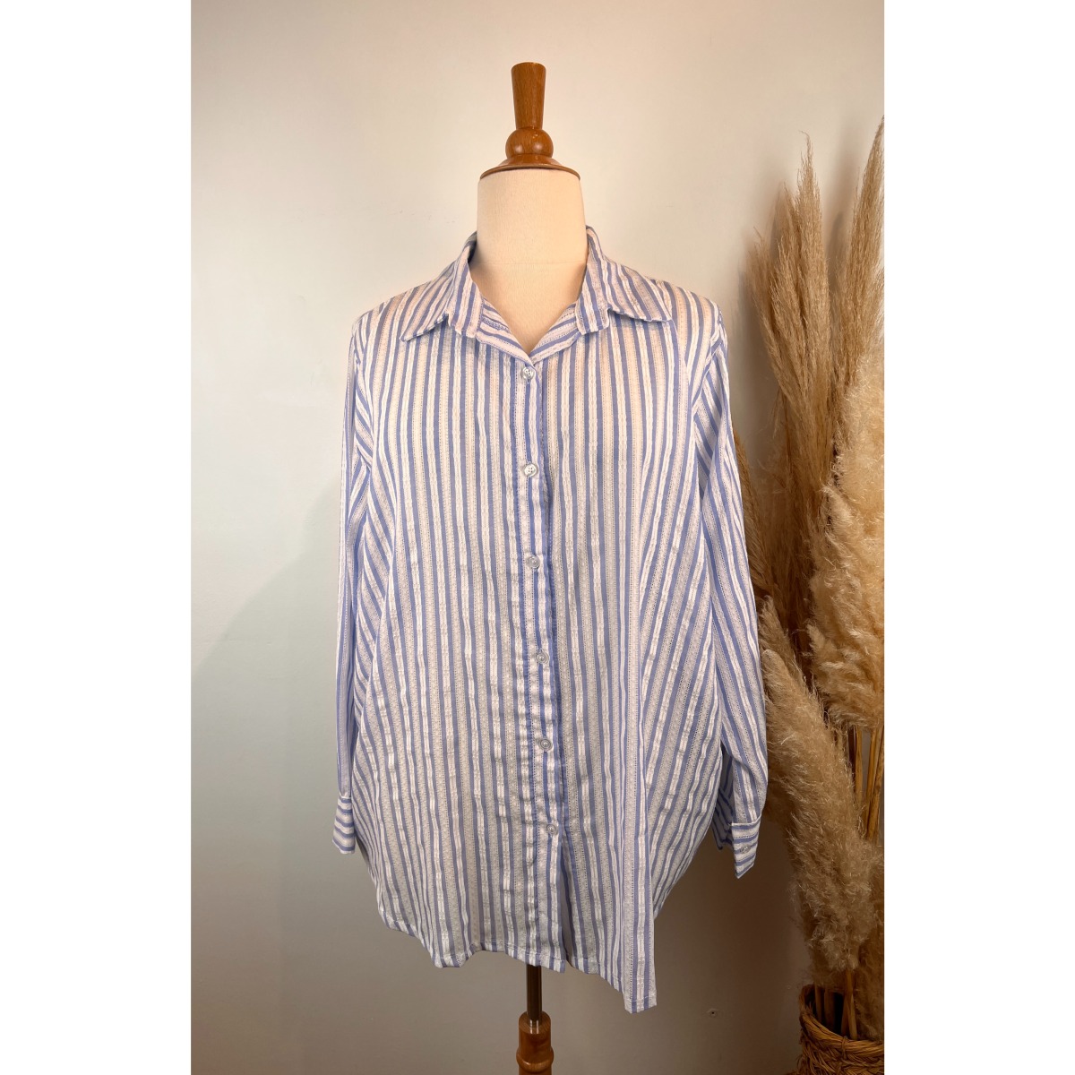 Confectionnée dans une matière agréable à porter, cette chemise se distingue par ses rayures délicates façon galons finement ajourés, apportant relief et raffinement au design. Parfaite au printemps, elle se porte aussi facilement en hiver sous un pull ou un gilet, pour un look superposé moderne et féminin.
