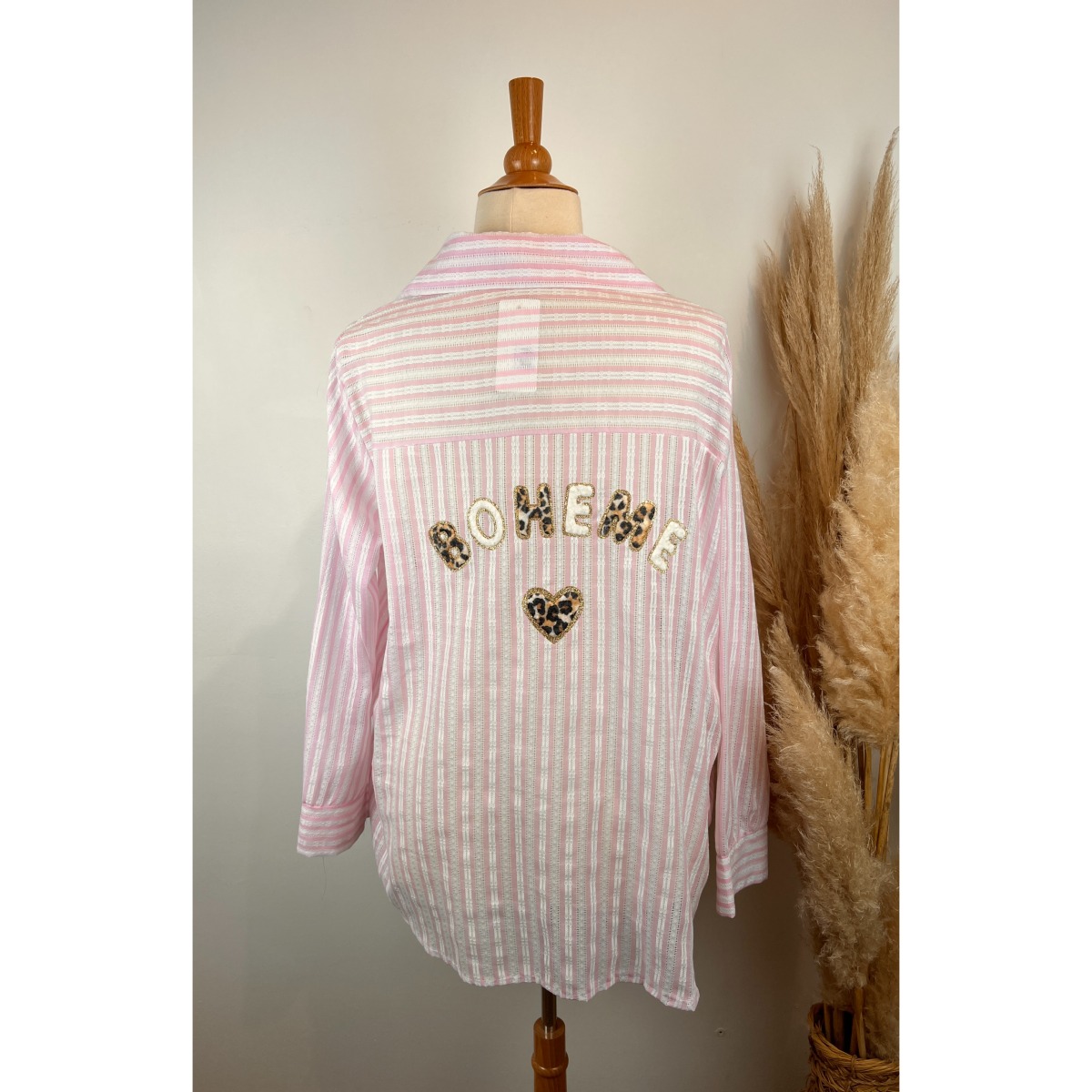 Apportez une touche de style bohème chic à votre dressing avec cette chemise légère rayée, pensée pour allier confort et élégance en toute saison. Son inscription bohème dans le dos lui confère une identité unique et tendance, idéale pour celles qui aiment les pièces à caractère.