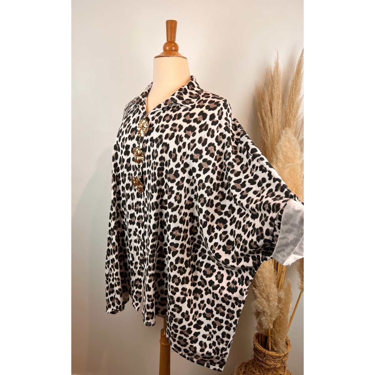 Chemise léopard blanc coton sweat léger + broches amovibles grande taille jusqu'au 60