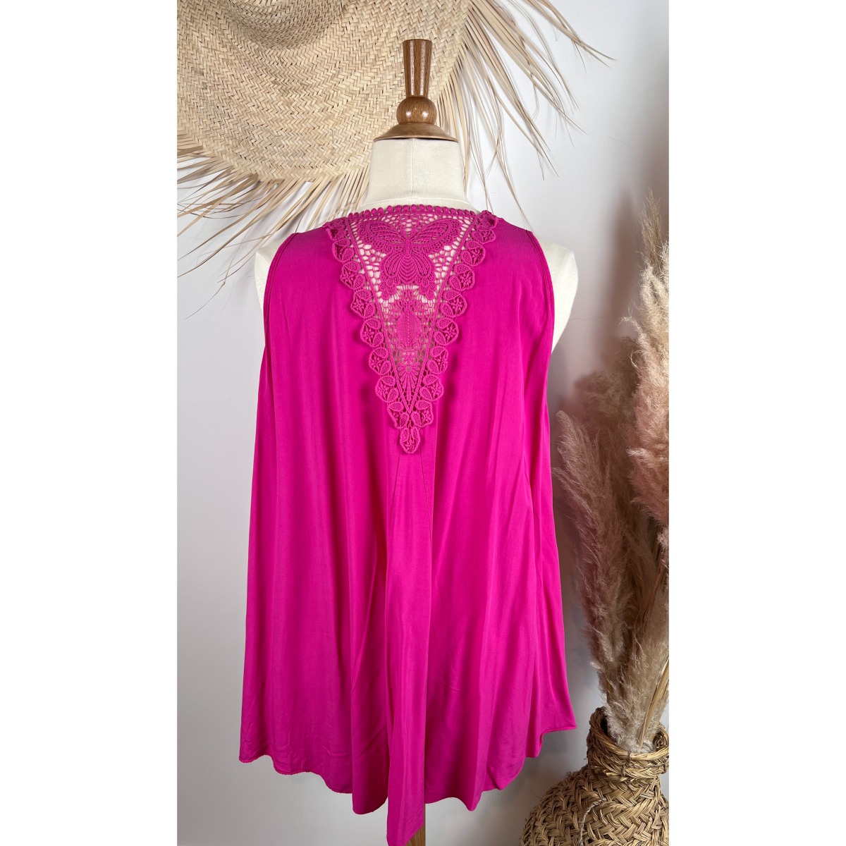 Débardeur tunique papillon dos crochet bohème grande taille