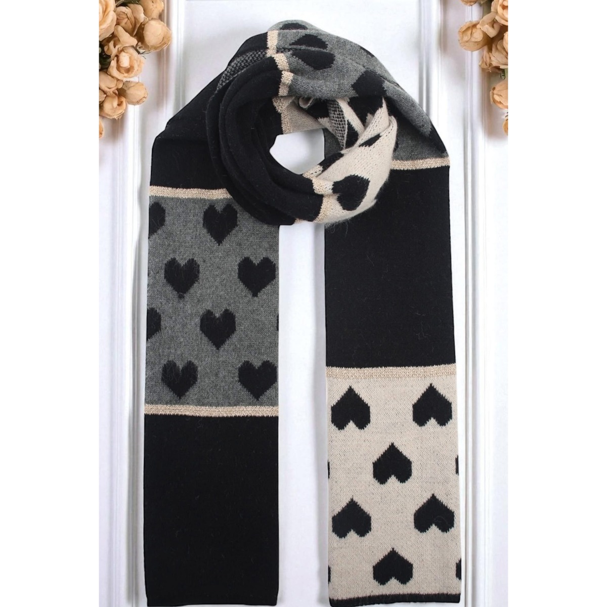 Apportez une touche de tendresse et de style à vos looks avec cette écharpe Cœurs de grande longueur.