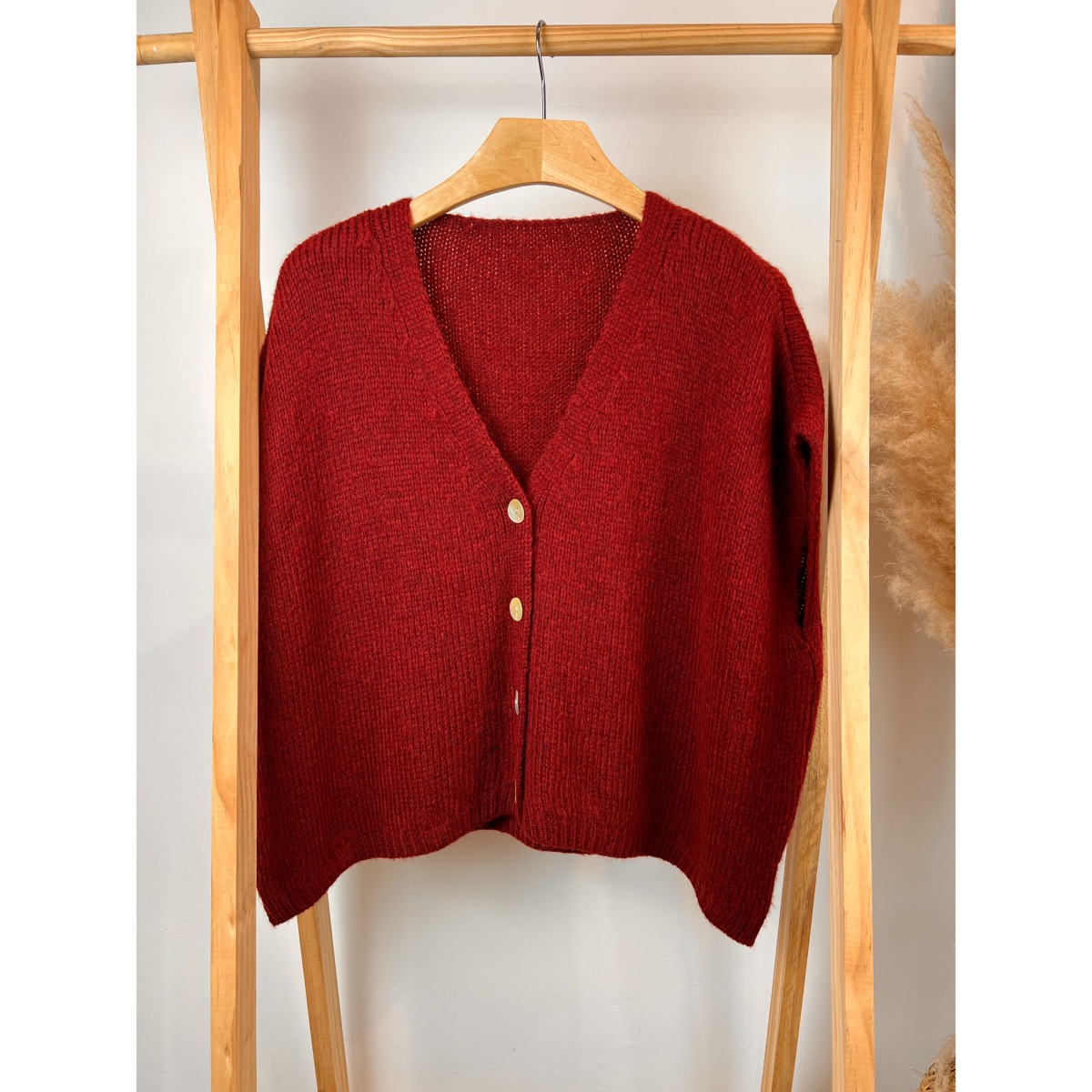 Sa maille extensible et confortable épouse toutes les morphologies jusqu’au 52/54, tandis que ses boutons en nacre apportent une touche raffinée. Facile à associer, il se porte aussi bien sur une chemise que sur un top léger, et se révèle idéal en superposition sur une robe ou une chemise pour un look décontracté et tendance.