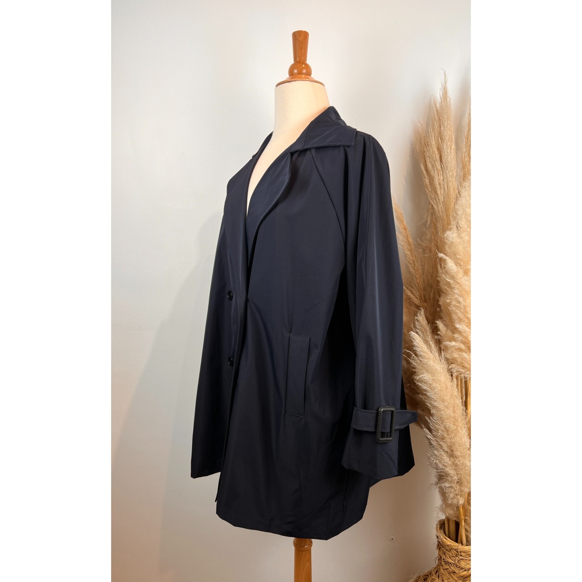 Doté d’une fermeture croisée élégante, ce trench grande taille structure la tenue et apporte une touche chic intemporelle. Sa matière imperméable protège efficacement de la pluie fine.