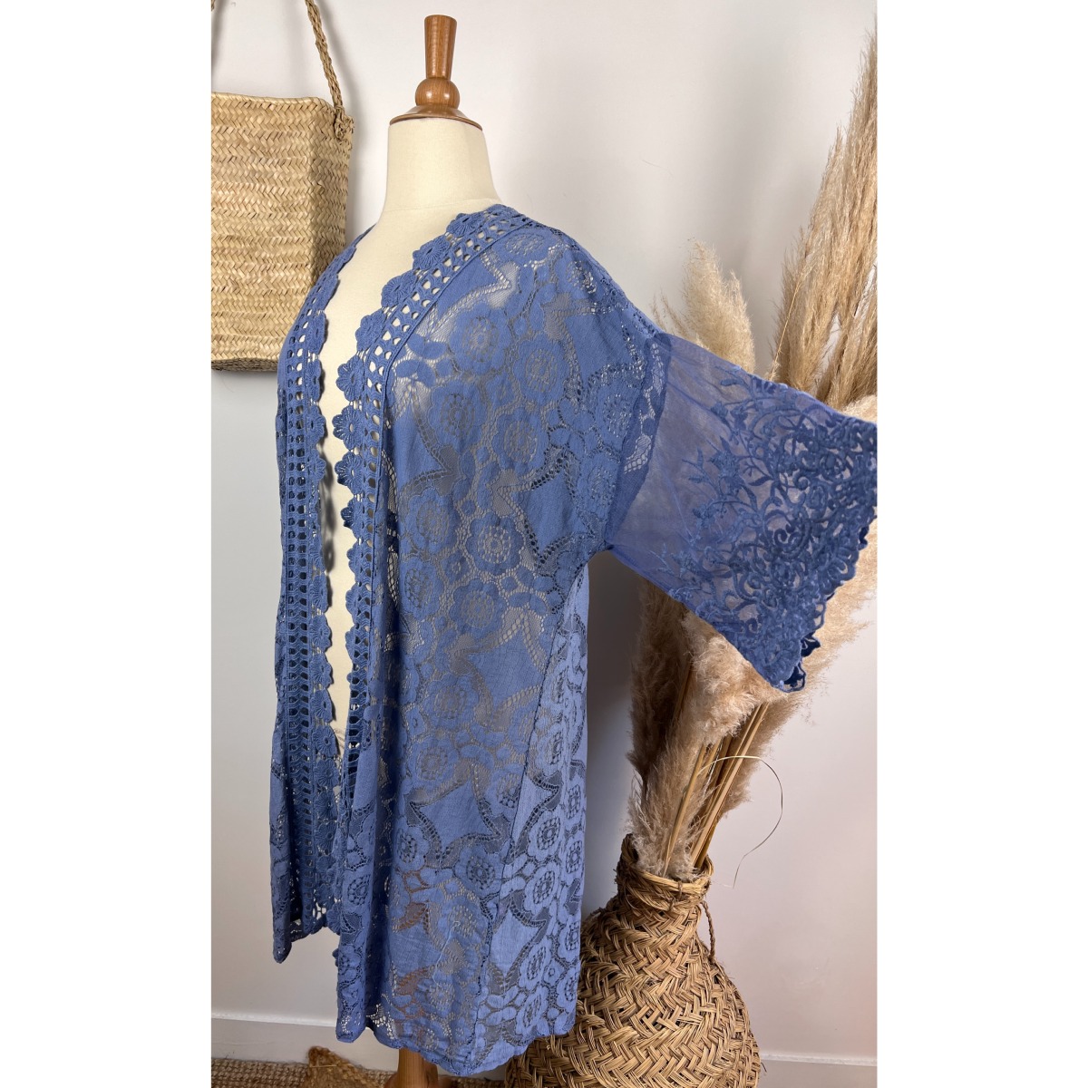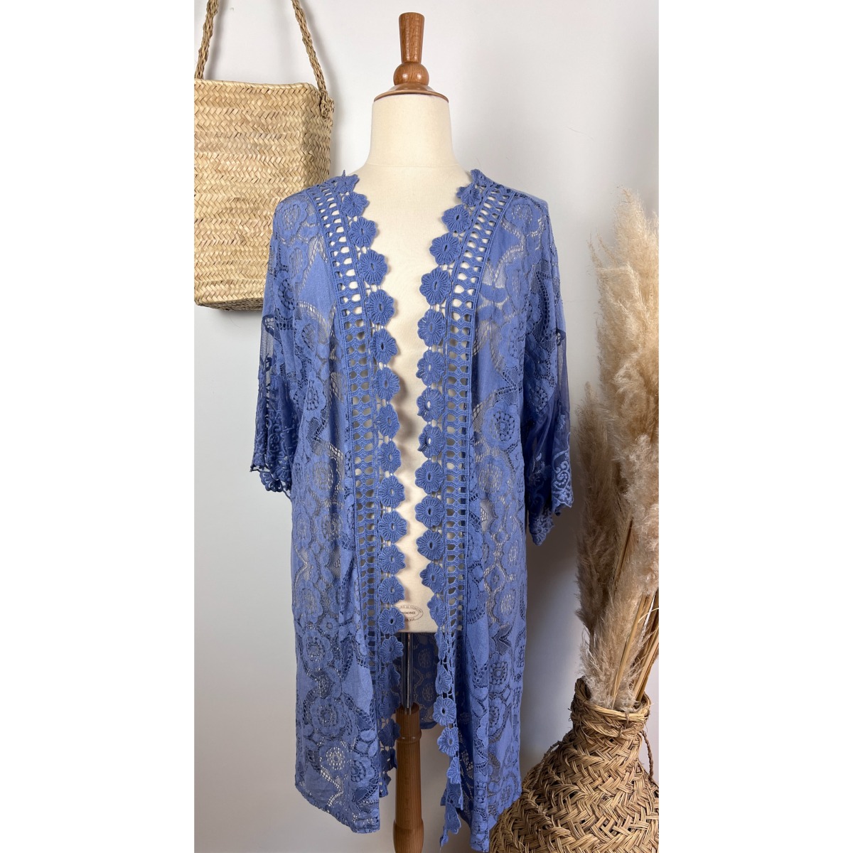 Le kimono dentelle bohème est la pièce vestimentaire qui incarne l'élégance délicate de la dentelle et l'esprit libre et bohème. Il peut servir de pièce maîtresse pour une tenue de soirée avec un fond de robe (disponible ici) , ou en tenue plus décontractée avec un jean et un top.