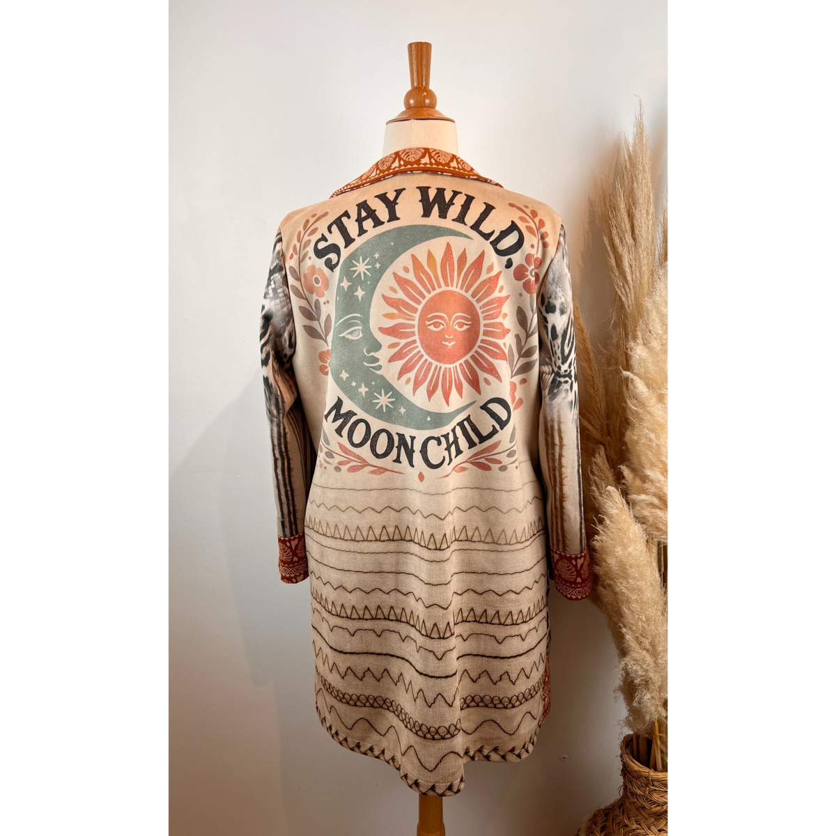 Affirmez votre style avec cette veste manteau en suédine imprimée, une pièce forte inspirée de l’univers artistique de Frida Kahlo. Entre élégance bohème et caractère affirmé, ce manteau revisite l’esprit folk et coloré de l’icône mexicaine à travers un imprimé vibrant et féminin.