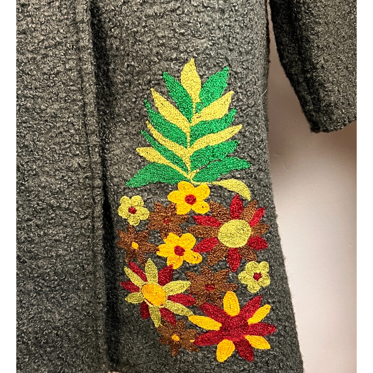 Sur le devant, de délicates broderies colorées délivrent un message aux ondes positives, pour illuminer vos journées d'automne et d’hiver. Un magnifique ananas entouré de fleurs vient compléter ce design original et plein de vie — une touche exotique et joyeuse qui fait toute la différence.
