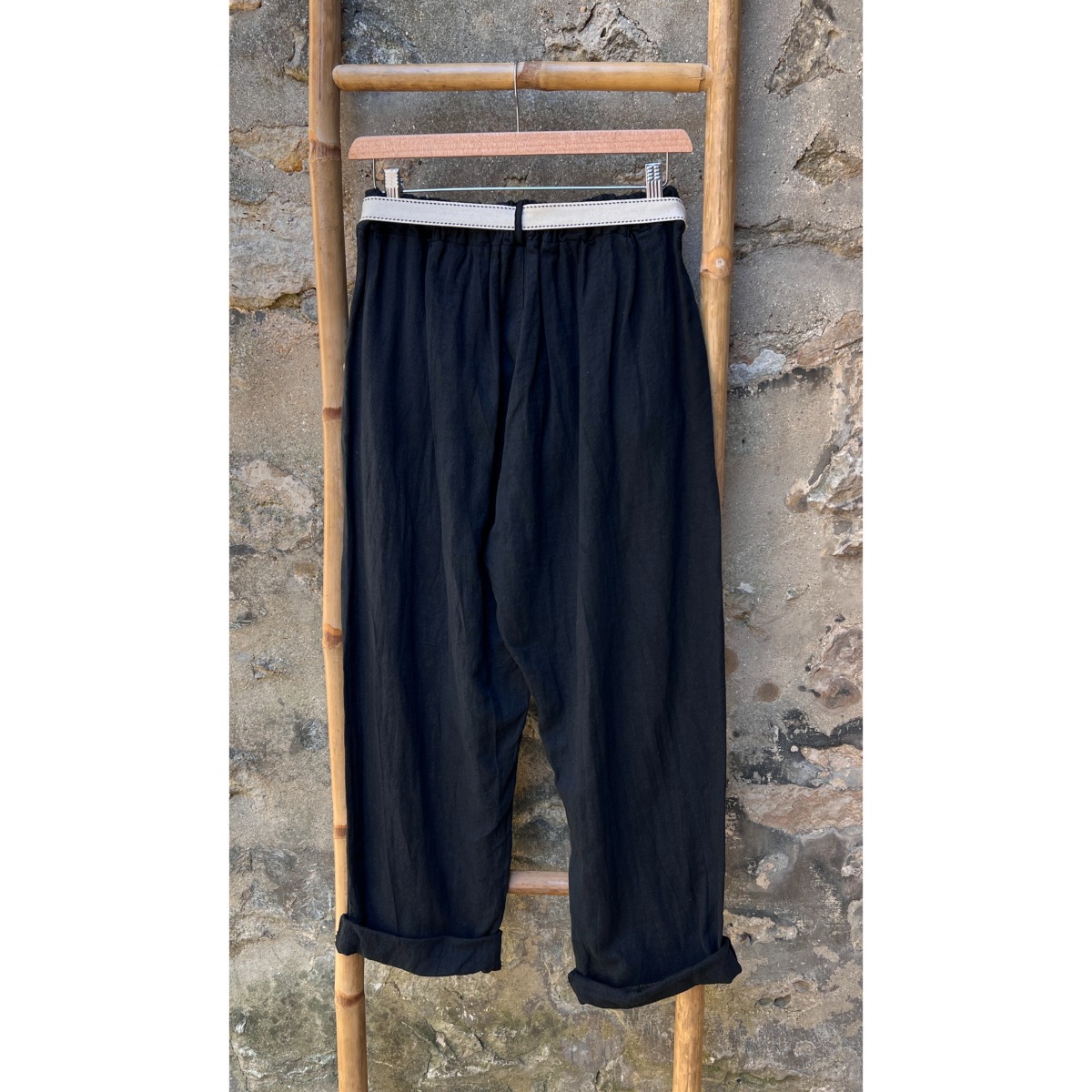 Pantalon 7/8 ème lin et coton + ceinture grande taille