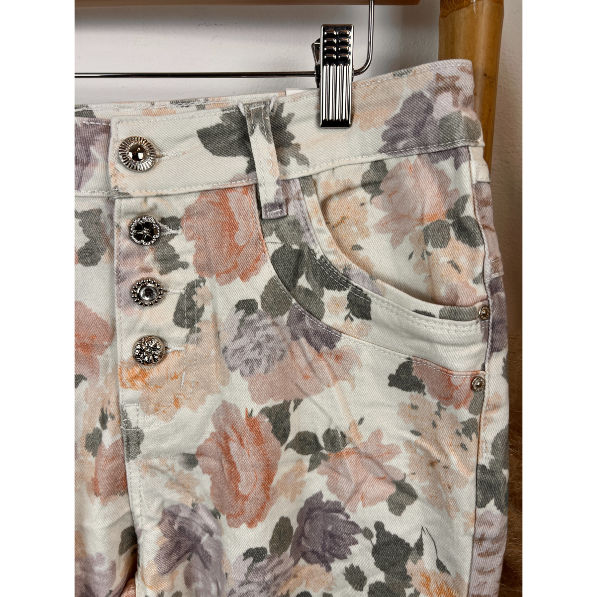 Idéal pour un look casual chic, ce pantalon à fleurs se porte aussi bien avec un top uni et des baskets pour une tenue décontractée, qu’avec une blouse élégante et des sandales pour une allure plus habillée.