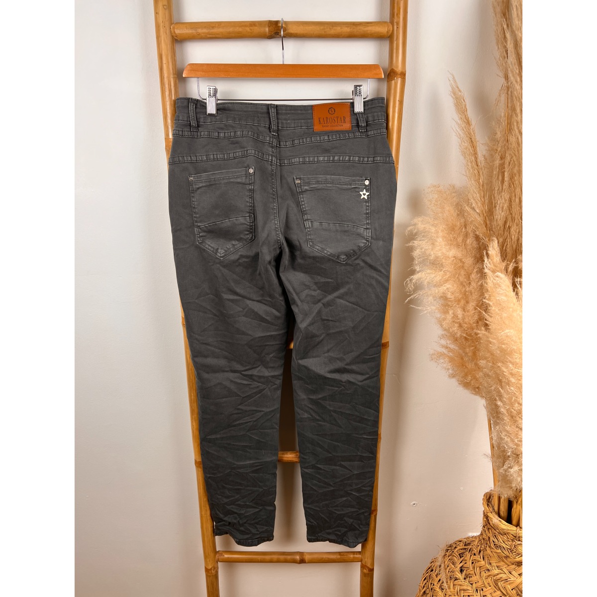 Affichez un look tendance et confortable avec ce jean noir froissé signé Karostar. Conçu pour sublimer toutes les silhouettes, ce jean taille haute épouse vos courbes sans comprimer, grâce à sa coupe ultra-confortable et son tissu doux et stretch.