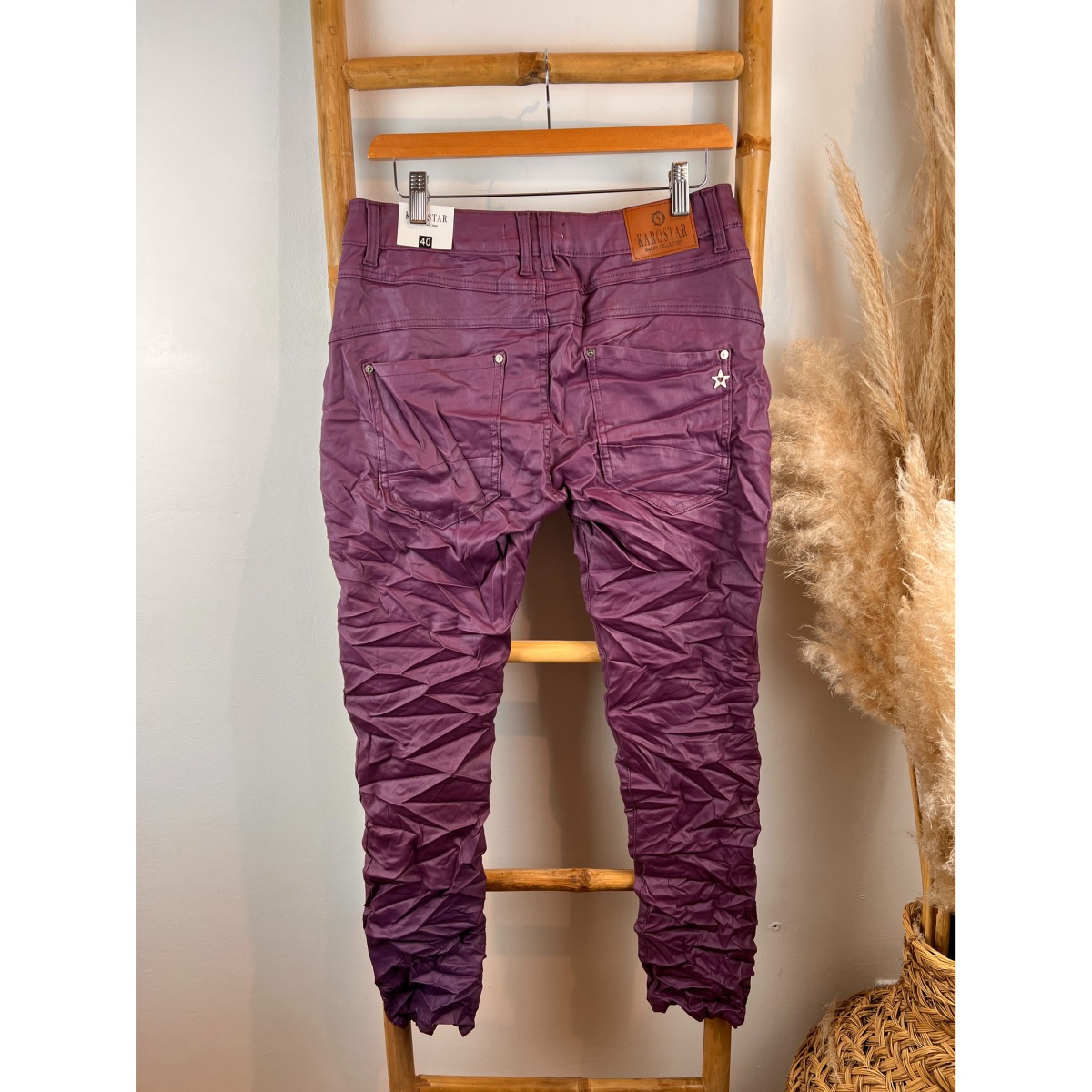 Pantalon jean en similicuir violet froissé karostar 36 au 44