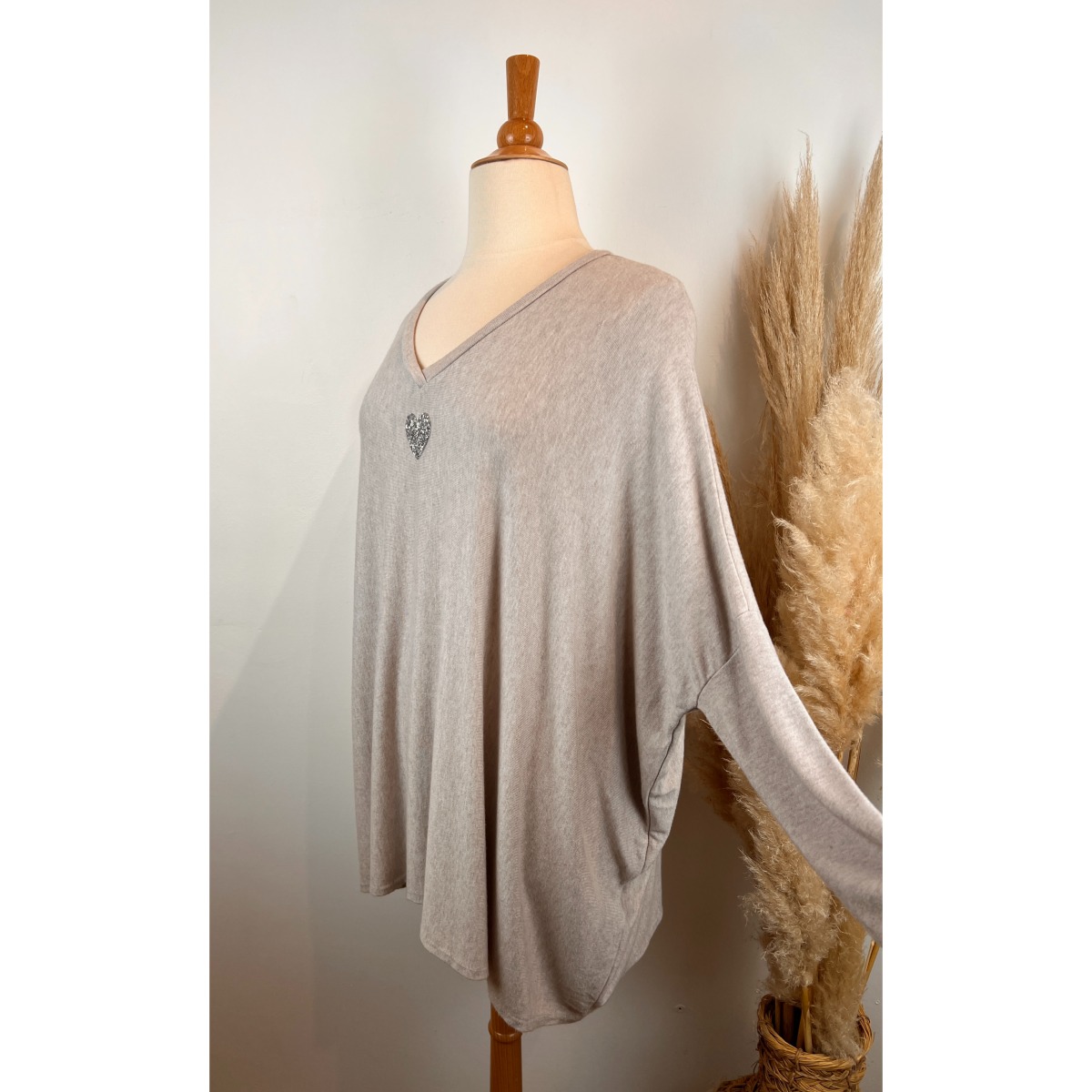 Très beau pull uni grande taille orné d’un magnifique motif cœur en strass, parfait pour ajouter une touche de brillance subtile à tes tenues du quotidien. Son design minimaliste est sublimé par ce cœur étincelant qui capte la lumière et apporte une note féminine et tendance.
