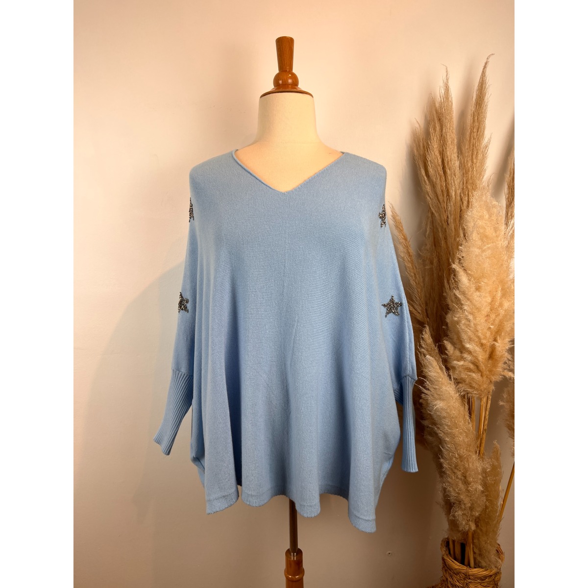 Craquez pour ce pull grande taille tendance, parfait pour allier confort et style. Confectionné dans une maille toute douce, il enveloppe la silhouette avec chaleur et légèreté. Ses étoiles en strass délicatement disposées sur les bras apportent une touche lumineuse et féminine, idéale pour sublimer vos looks du quotidien.