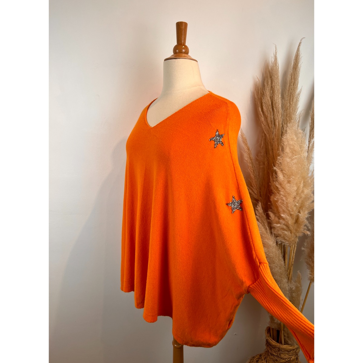 Craquez pour ce pull grande taille tendance, parfait pour allier confort et style. Confectionné dans une maille toute douce, il enveloppe la silhouette avec chaleur et légèreté. Ses étoiles en strass délicatement disposées sur les bras apportent une touche lumineuse et féminine, idéale pour sublimer vos looks du quotidien.