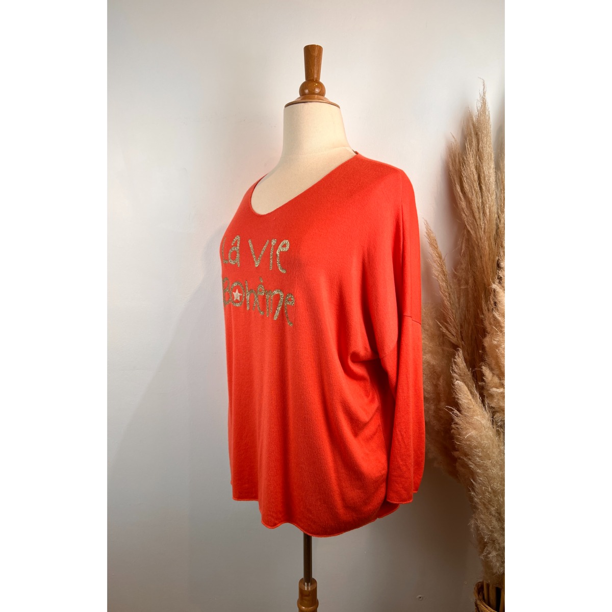 Apportez une touche de douceur et d’élégance à votre dressing avec ce pull grande taille de la nouvelle collection, idéal pour la saison printanière. Confectionné dans une matière ultra douce, il offre un confort absolu tout au long de la journée. Son design tendance est sublimé par l’inscription « La Vie Bohème » sur le devant, rehaussée de pailletés dorés pour une note lumineuse et féminine.