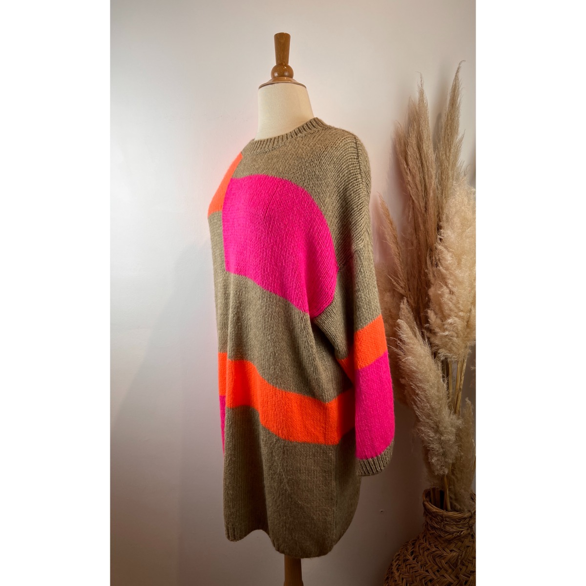 Robe pull grosses mailles orange/fushia grande taille