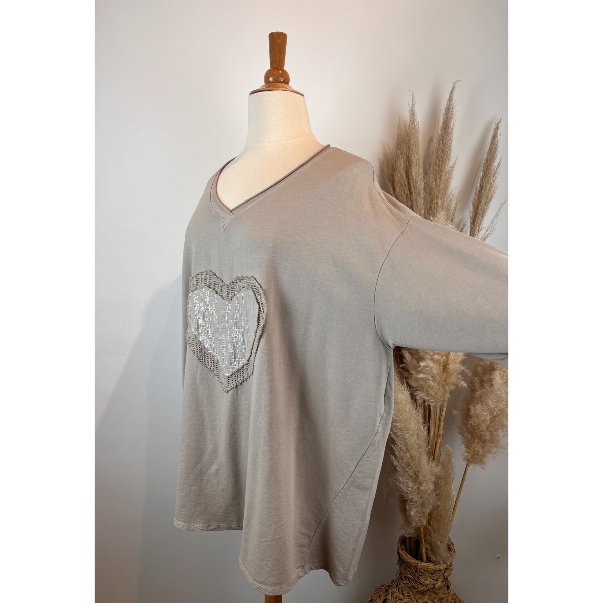Alliez confort et éclat avec ce sweat grande taille orné d’un motif cœur en sequins.