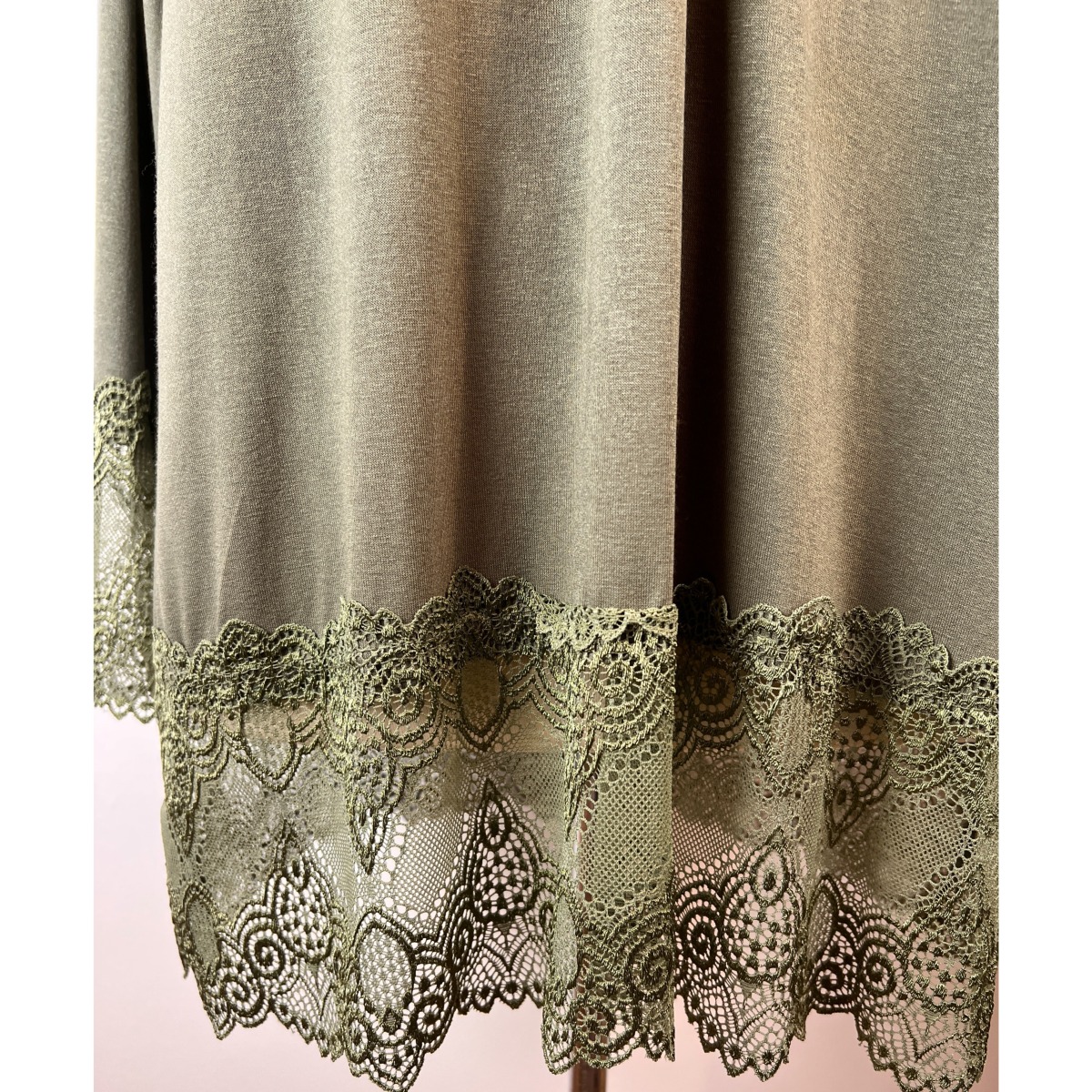 - Dentelle à l'encolure, aux bas des manches et dans le bas