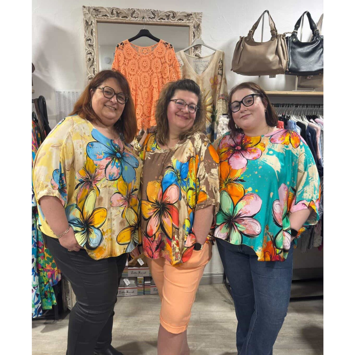 Sur la dernière photo issue d'un live, la tunique est portée sur des mannequins (de gauche à droite) taille 56, taille 46/48 et taille 50/52