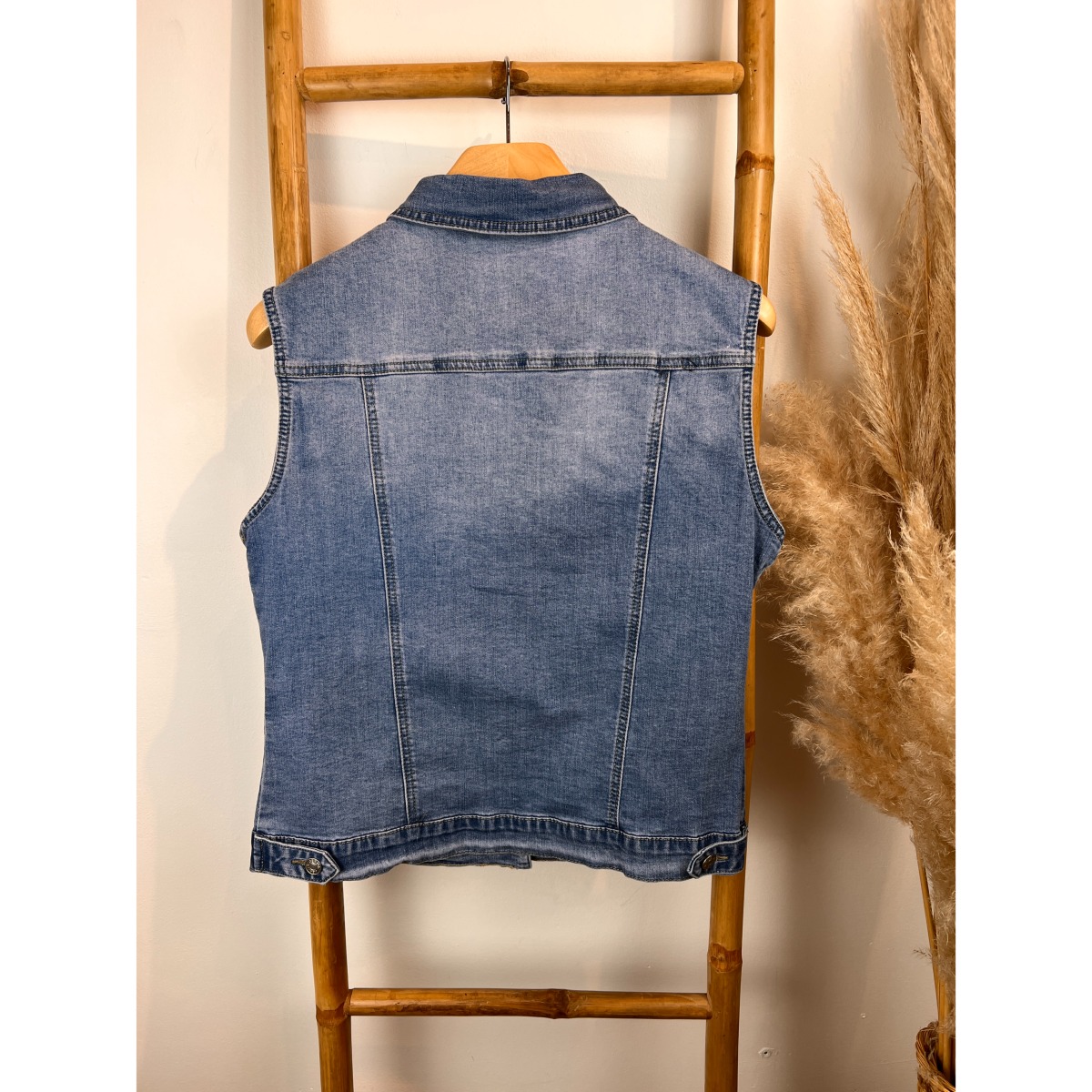 Confectionnée dans un denim de qualité, souple et agréable à porter, cette veste sans manches grande taille est idéale pour la mi-saison et les journées plus fraîches d’été.