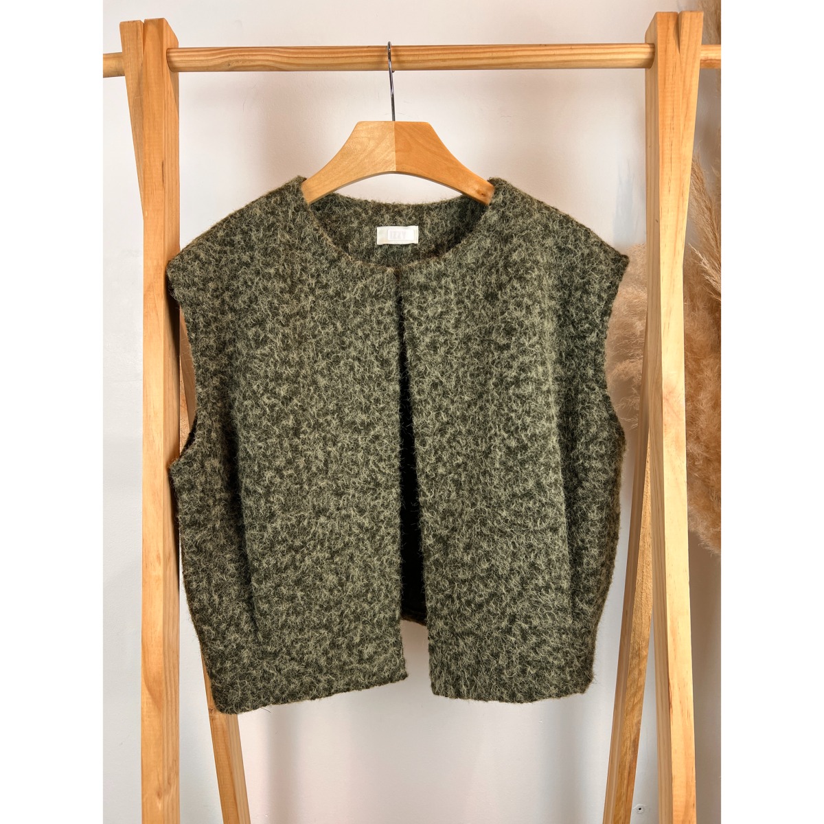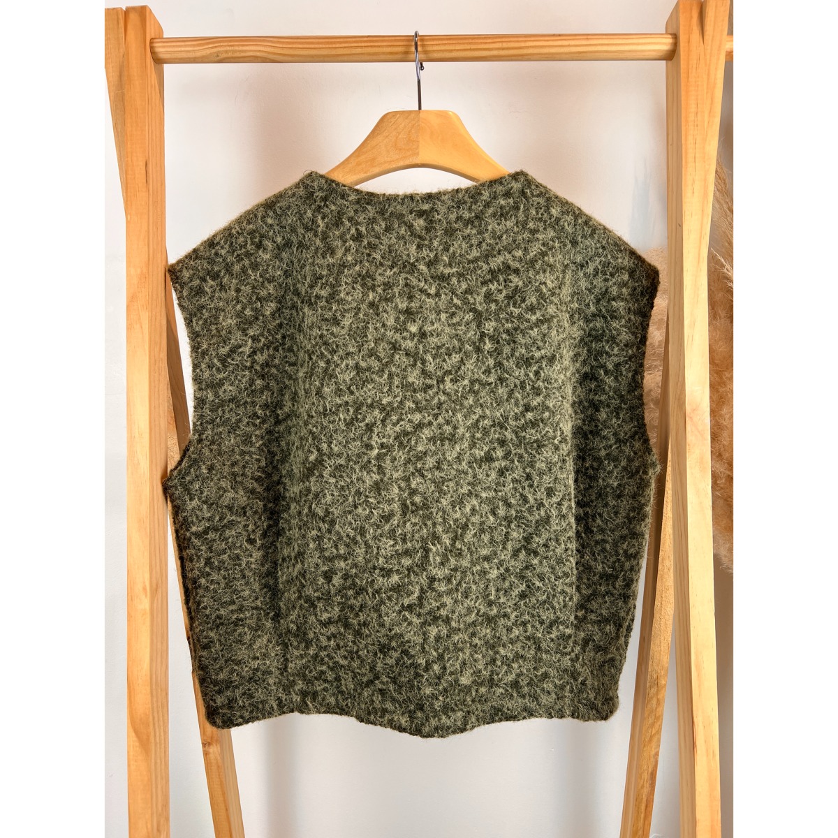 Cette veste chaude sans manches est idéale pour la mi-saison ou pour superposer lors des journées plus froides. Son aspect laine bouillie lui confère une allure naturelle et raffinée, tout en garantissant une belle tenue au fil du temps.